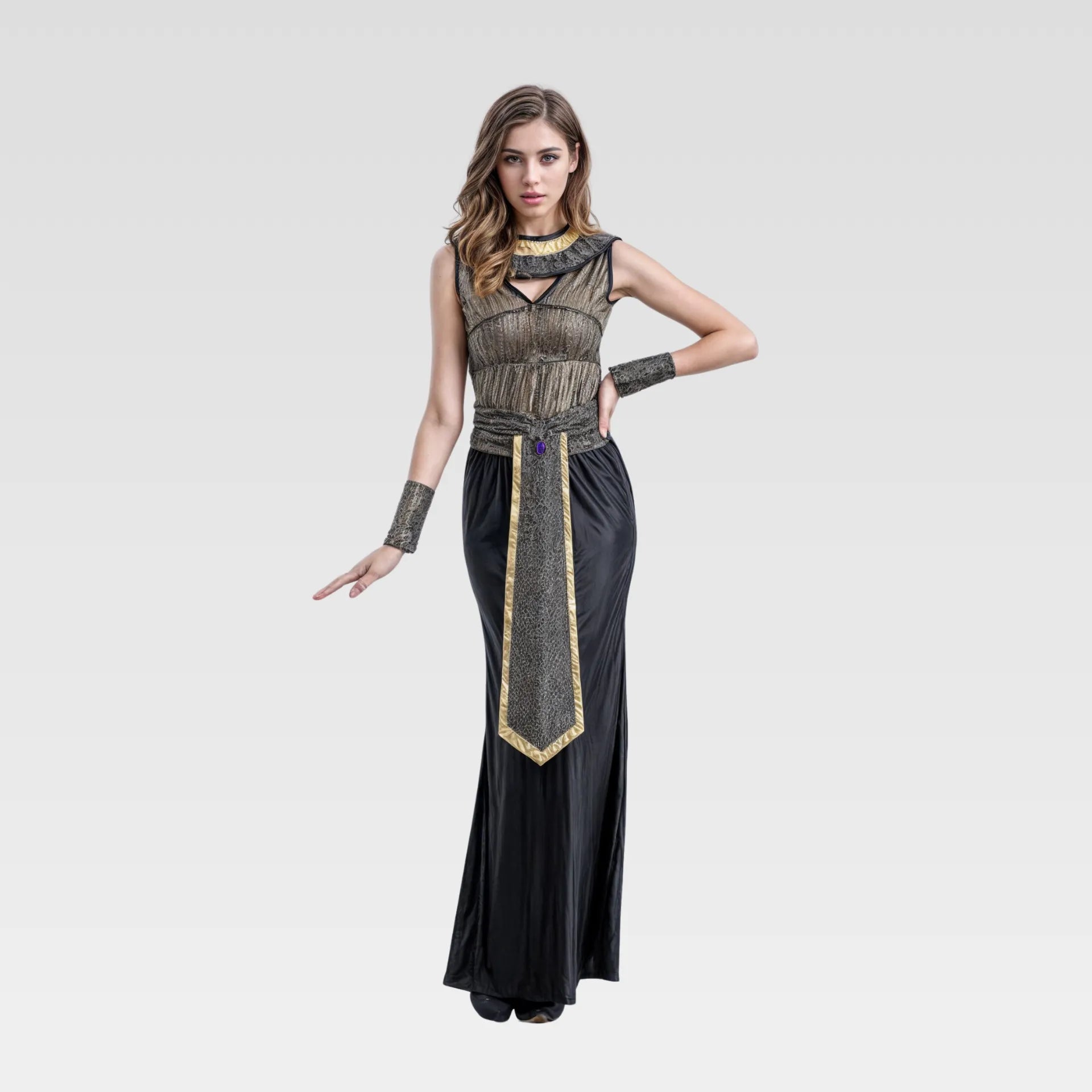 Conviértete en la majestuosa diosa del antiguo Egipto con nuestro impresionante disfraz. Ideal para quienes desean evocar el glamour y la elegancia de la época faraónica, este disfraz te hará brillar en cualquier ocasión.