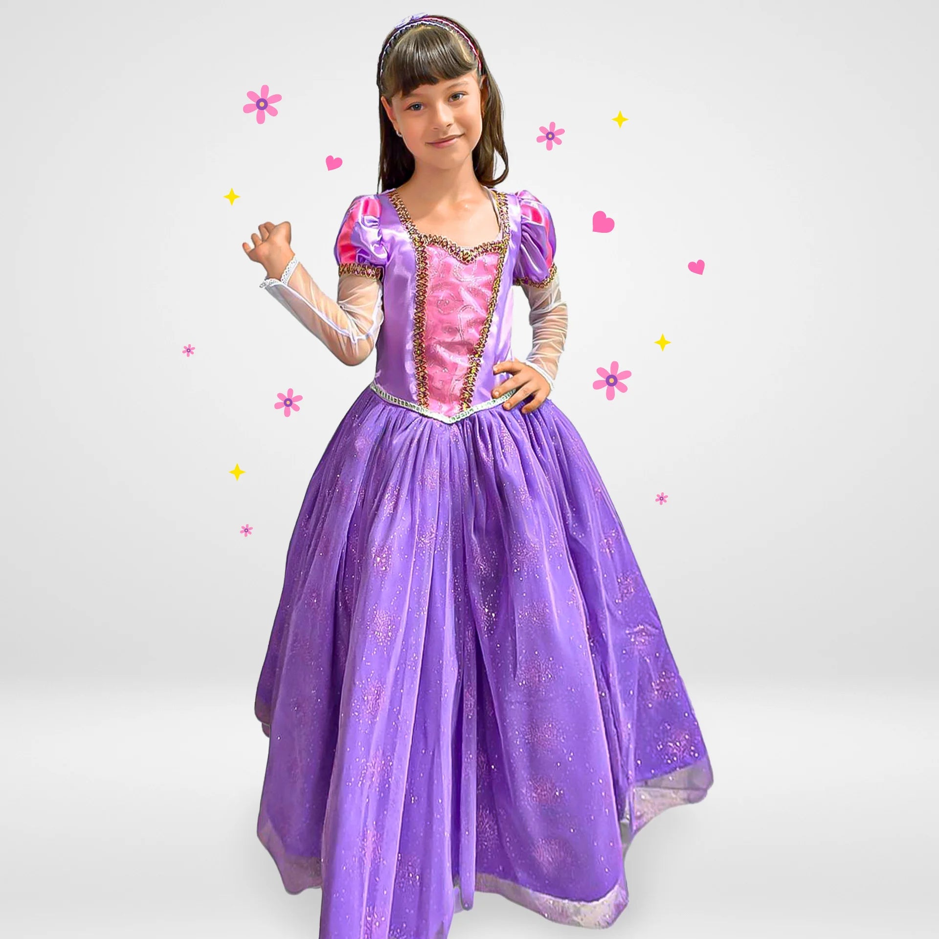 ¡Ideal para fiestas de disfraces, eventos temáticos de princesas, celebraciones de cumpleaños o simplemente para hacer realidad los sueños de tu pequeña! Este disfraz de Princesa Rapunzel la transportará a un mundo de aventuras entre torres y campos llenos de flores.