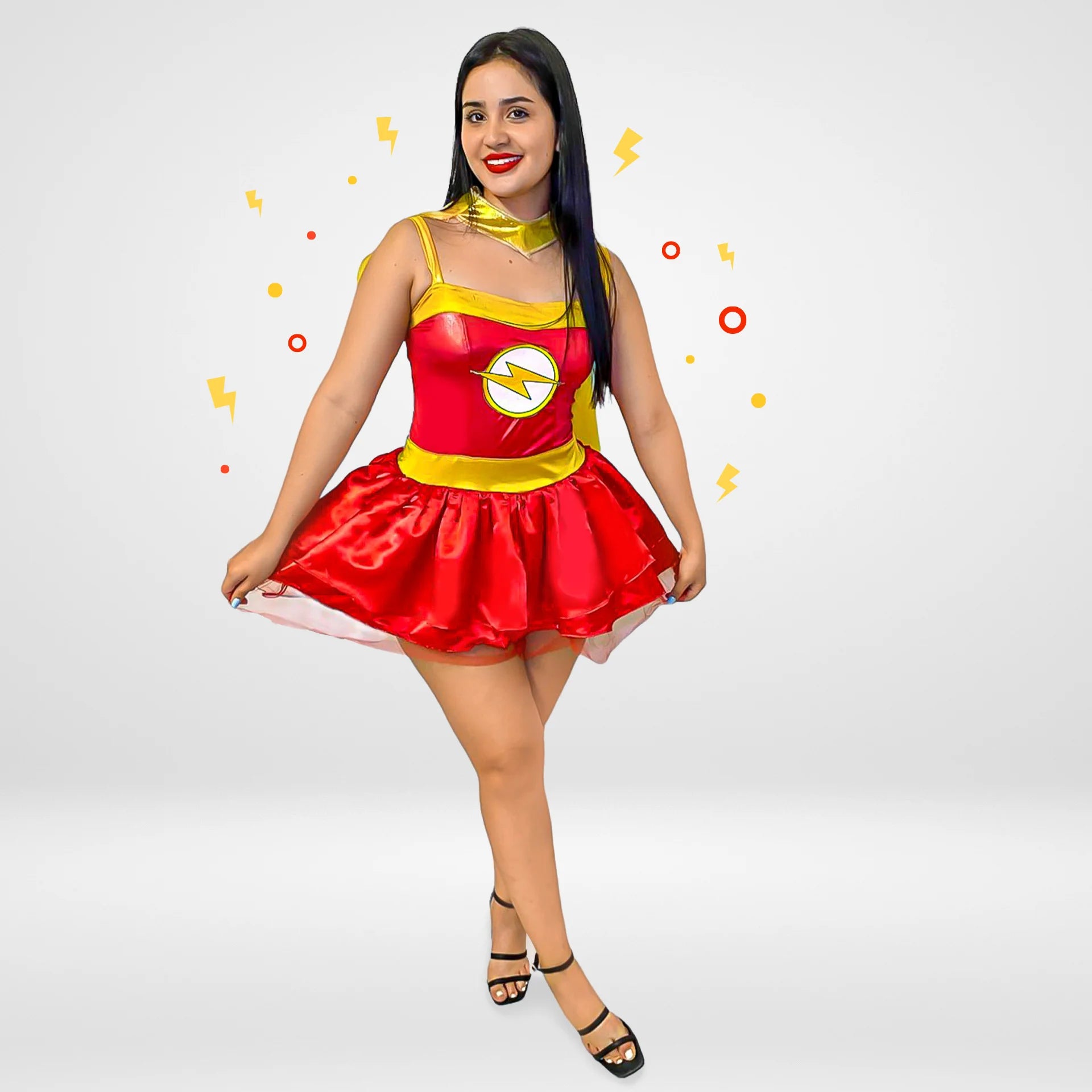 ¡Prepárate para correr a la velocidad de la luz con nuestro espectacular disfraz de Flash mujer! Perfecto para quienes desean destacar como una heroína veloz y poderosa en cualquier evento.
