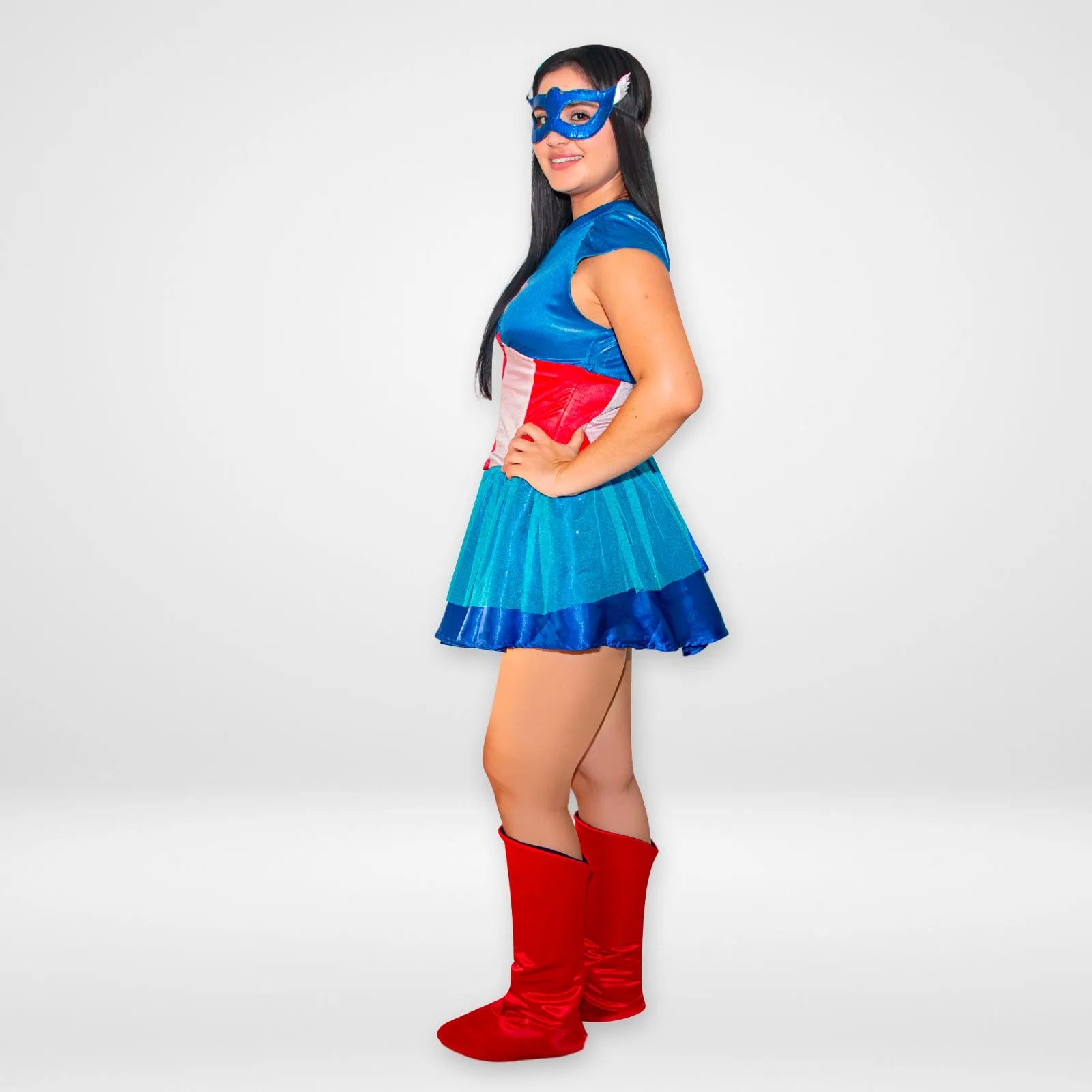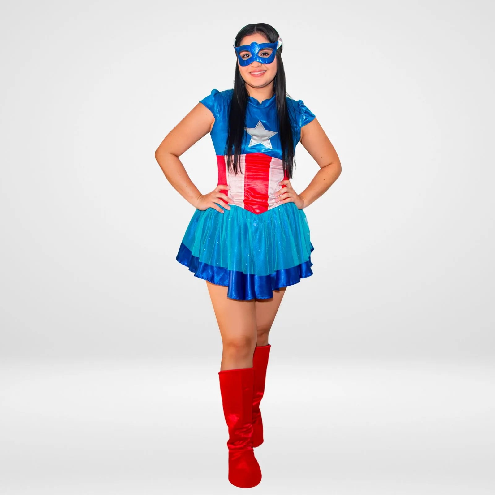 ¡Conviértete en la heroína que el mundo necesita con nuestro espectacular Disfraz de Capitán América! Ideal para fiestas de disfraces, eventos temáticos o convenciones, este disfraz te permitirá asumir el papel de la valiente protectora del sueño americano con un toque femenino y elegante.